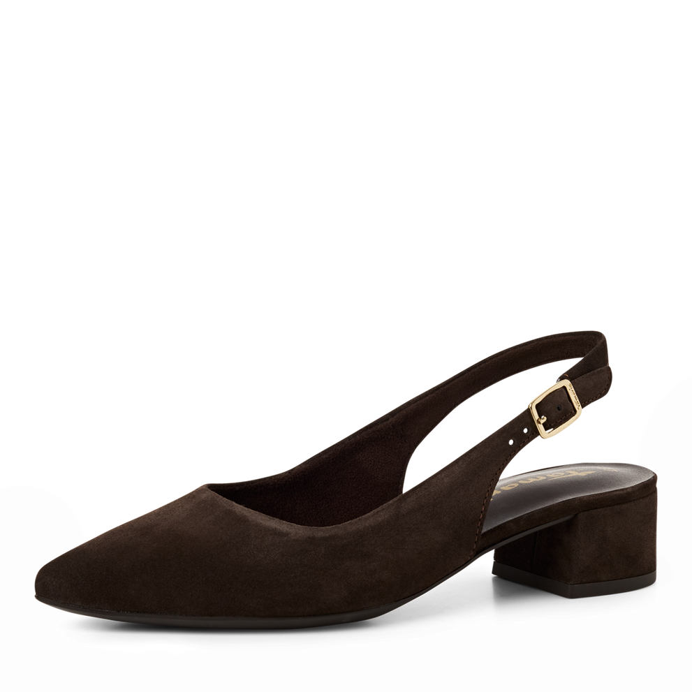 Perfekt slingback pumps fra Tamaris. Nydelig mocca farge i mykt og behagelig skinn.